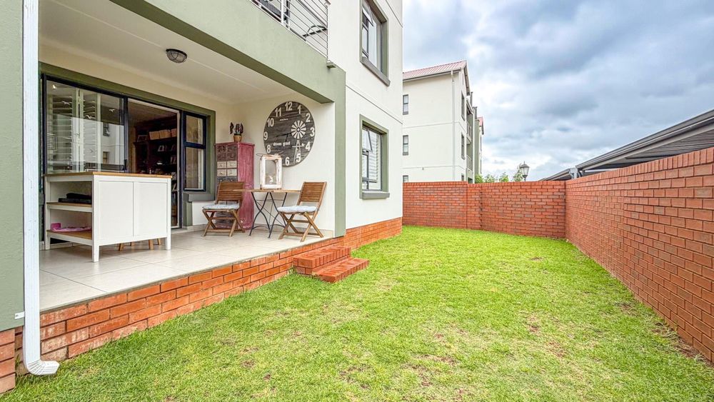 This warm and inviting 3 bedroom, 2 bathroom ground floor apartment offers modern comfort with thoughtful upgrades and a generous private garden. It is perfectly positioned within the sought-after Golden Fields Estate in Louwlardia, Centurion.